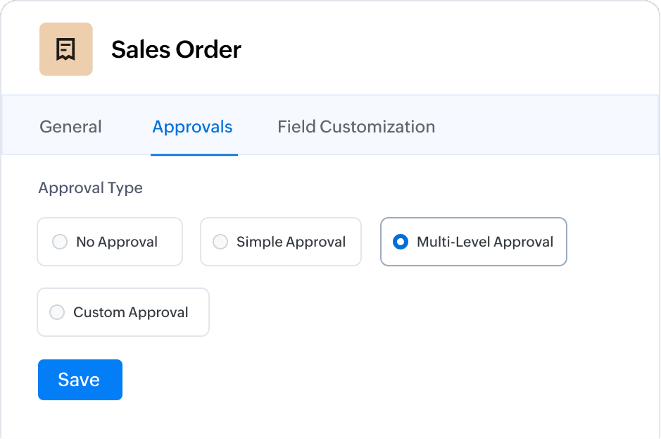 Zoho Books allows you to set up automated approval workflows within your organization to get your sales order signed off.